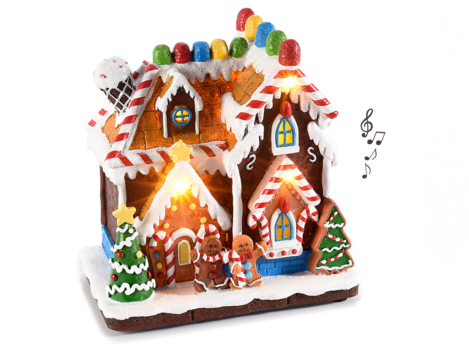Casetta "pan di zenzero" in resina colorata con luci e musica