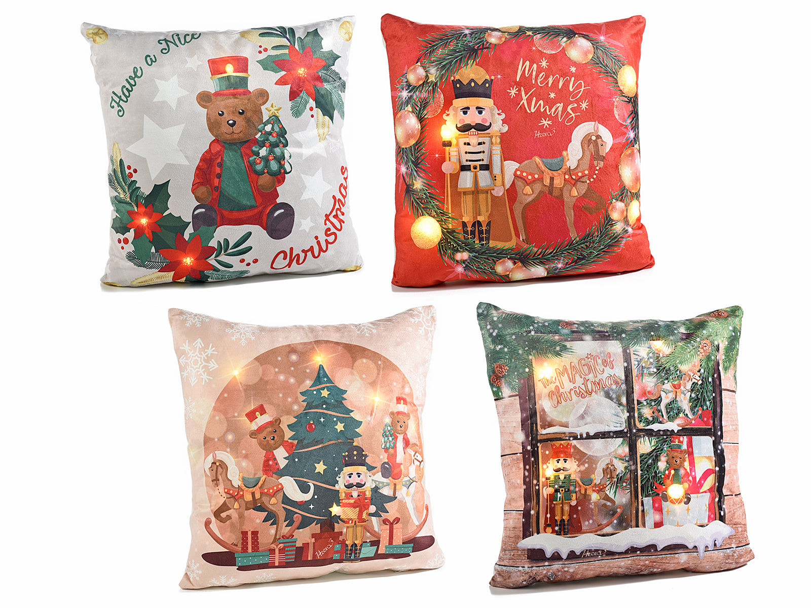 Cuscino imbottito vellutato "Vintage Xmas" c/luci LED
