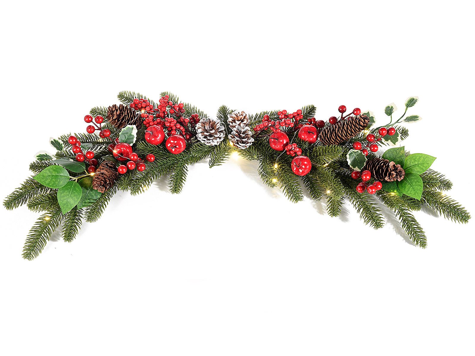 Ghirlanda con mele, pigne, bacche rosse e luci LED