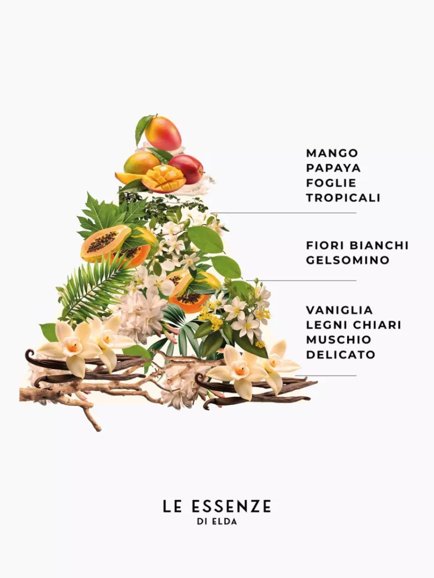 Note di Testa: Mango, Papaya, Foglie Tropicali