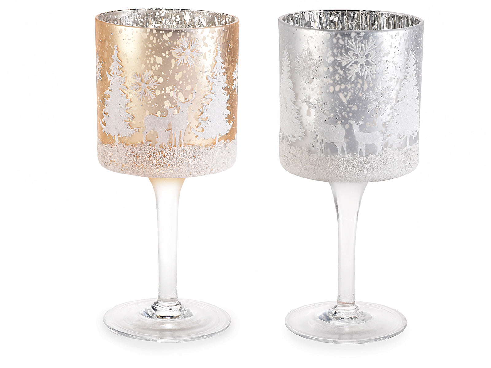 Portacandela a calice in vetro con decori paesaggio innevato