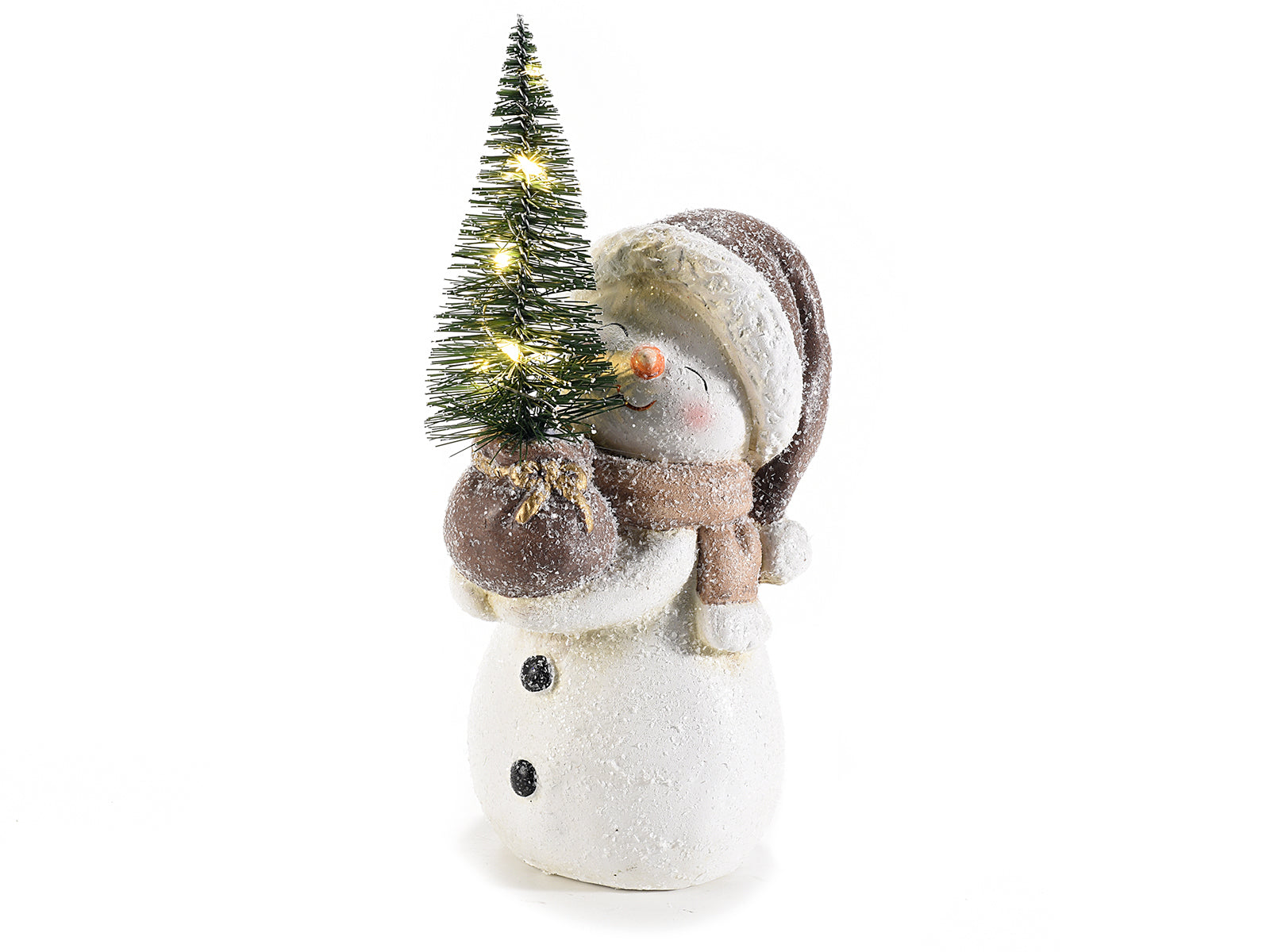 Pupazzo di neve terracotta effetto innevato c/albero a LED