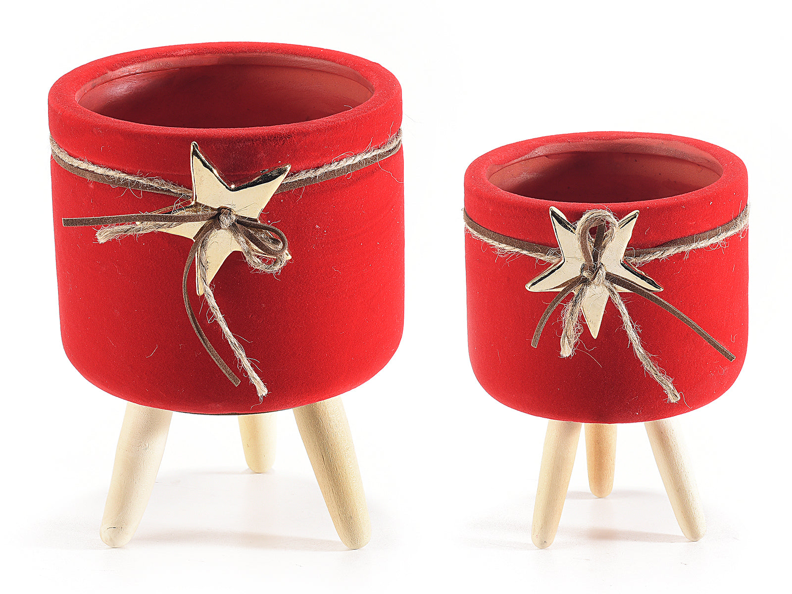 Set 2 vasetti terracotta rivestiti in velluto su treppiede