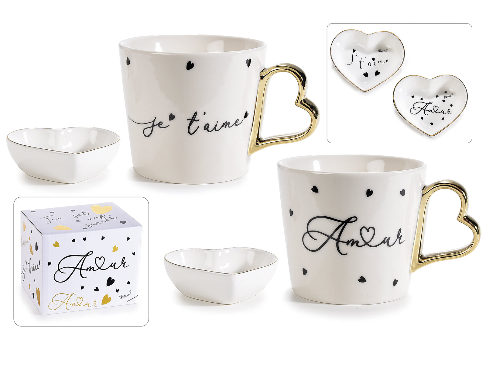 Tazza "Amour" con Coppetta in Porcellana e Scatola Regalo